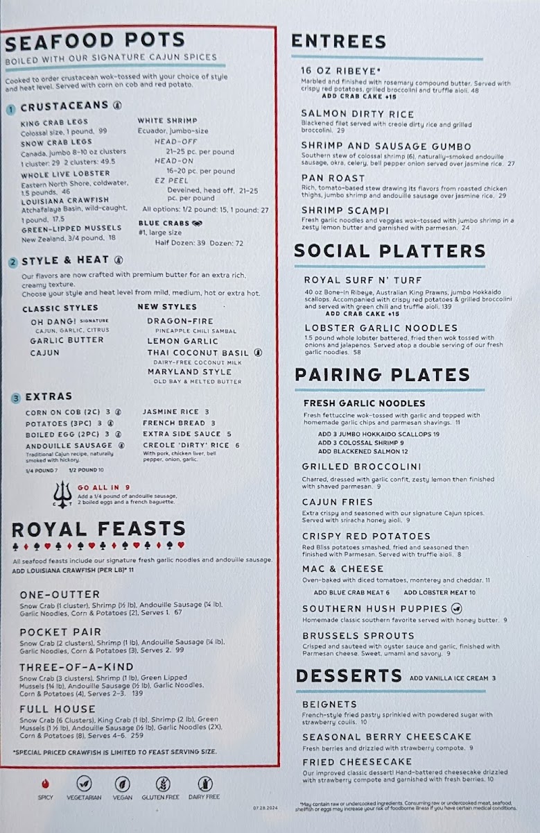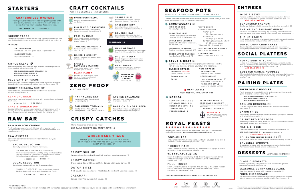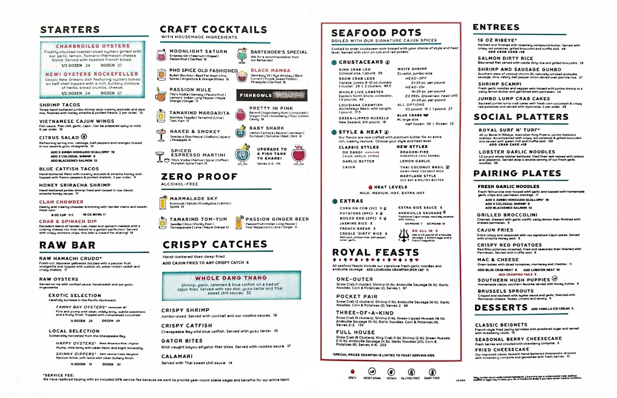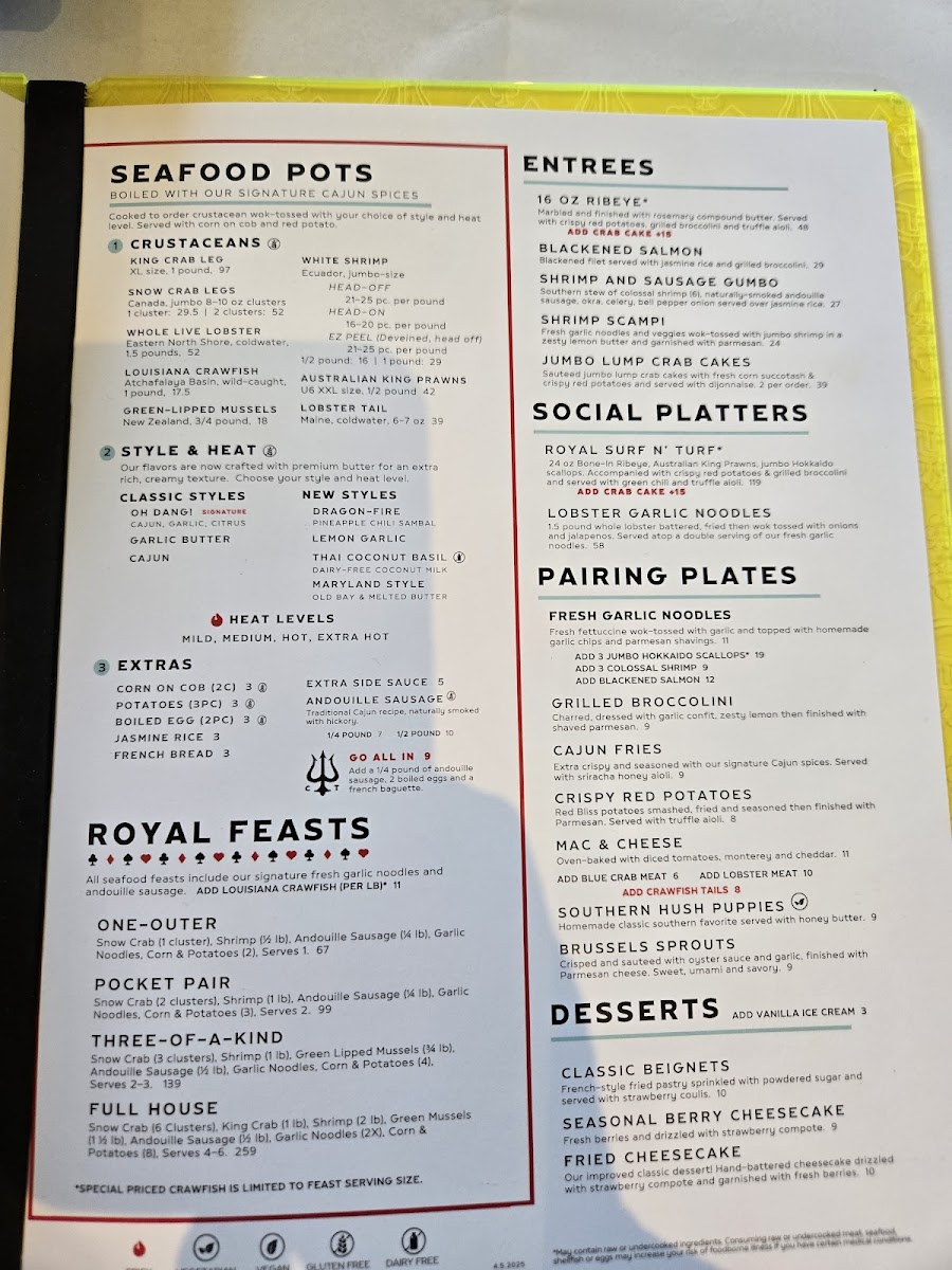 Popular Dishes: Start your culinary journey with their Charbroiled Oysters, a tantalizing appetizer featuring large, freshly shucked oysters grilled to perfection with a garlic, lemon, and parmesan cheese blend. The crispy outside gives way to a briny, luscious delight, especially when paired with freshly baked French bread. For those craving an extravagant feast, the King Crab Legs are a must-try. Colossal in size and served with corn and potatoes, each bite is a celebration of the sea. And if you fancy a little bit of everything, the Royal Feast offers a stunning selection of seafood that invites you to dive in with family and friends. Don’t forget to save room for dessert, as the sweet endings here are not to be missed!